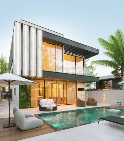 Piso inferior em porcelanato, escadas em mármore, piso superior em madeira, portas envidraçadas, janelas superior automatizadas, aquecimento solar, espaço gourmet com churrasqueira, piscina aquecida, garagem 4 carros.